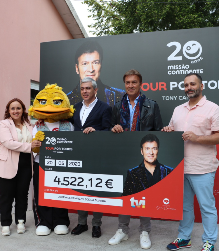 No âmbito da celebração dos 20 anos da Missão Continente e da sua digressão solidária, Tony Carreira visitou, no último sábado (13/05), a Casa de Acolhimento Residencial da Guarda das Aldeia de Crianças SOS. Durante a visita, teve a oportunidade de conhecer melhor a missão, os valores e o trabalho desenvolvido pela organização, e entregou um cheque no valor de 4.522,12 euros.