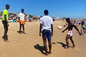 Com o calor na cidade, treze jovens, originários da Gâmbia e Afeganistão, acompanhados pelas Equipas da EAS e AA’s Lisboa foram pela primeira vez, conhecer as praias ao redor de Lisboa. Durante o trajeto de comboio e em alegre convívio, os jovens escolheram a praia de Carcavelos, para passar a tarde e aproveitar para dar uns toques na bola, já que o futebol é o seu desporto de eleição.